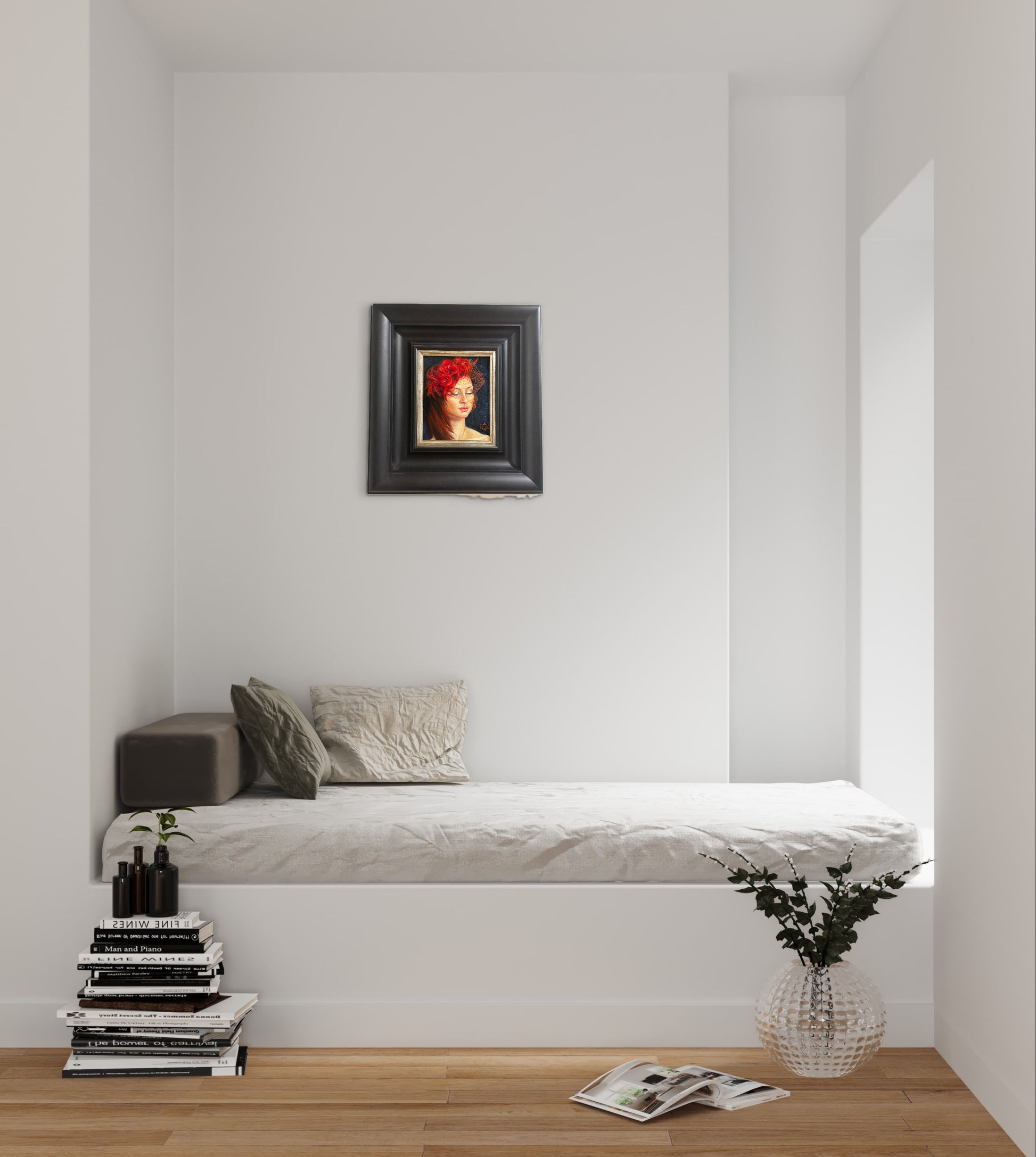 Scarlet is an oil painting on a 10 x 8-inch panel, inspired by The Scarlet Letter, a hallmark of American literature set in mid-16th-century Puritan New England. This artwork captures the profound emotional and societal turmoil faced by a young woman accused of adultery, reflecting themes of guilt, sin, and repentance. The piece offers a nuanced, expert interpretation of the historical narrative’s complex moral and psychological dimensions.